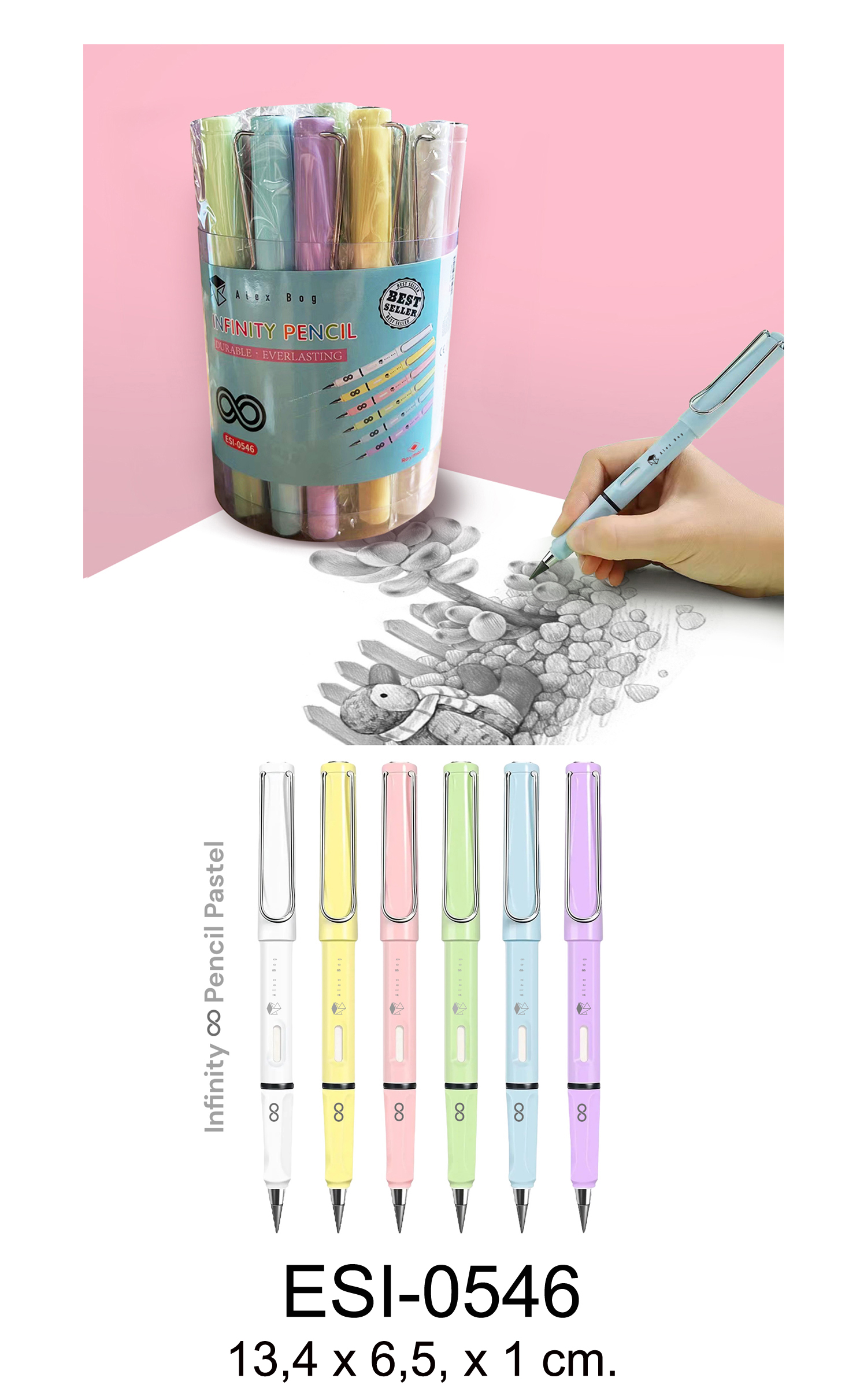 BOTE PVC 30 LAPICES INFINITOS 6 COLORES PASTEL