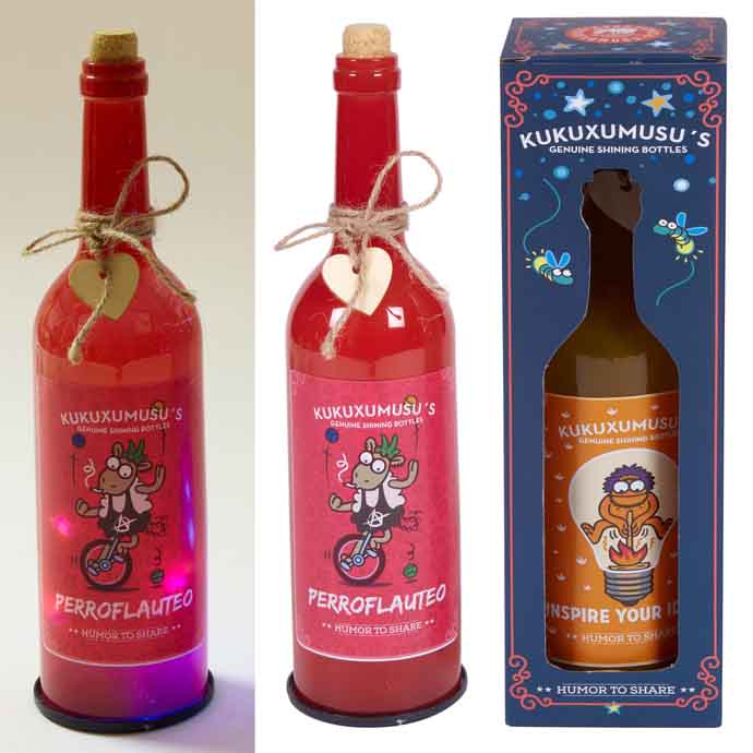 BOTELLA CON LUZ KUKUXUMUXU PERROFLAUTEOBOTELLA CON LUZ KUKUXUMUXU PERROFLAUTEO