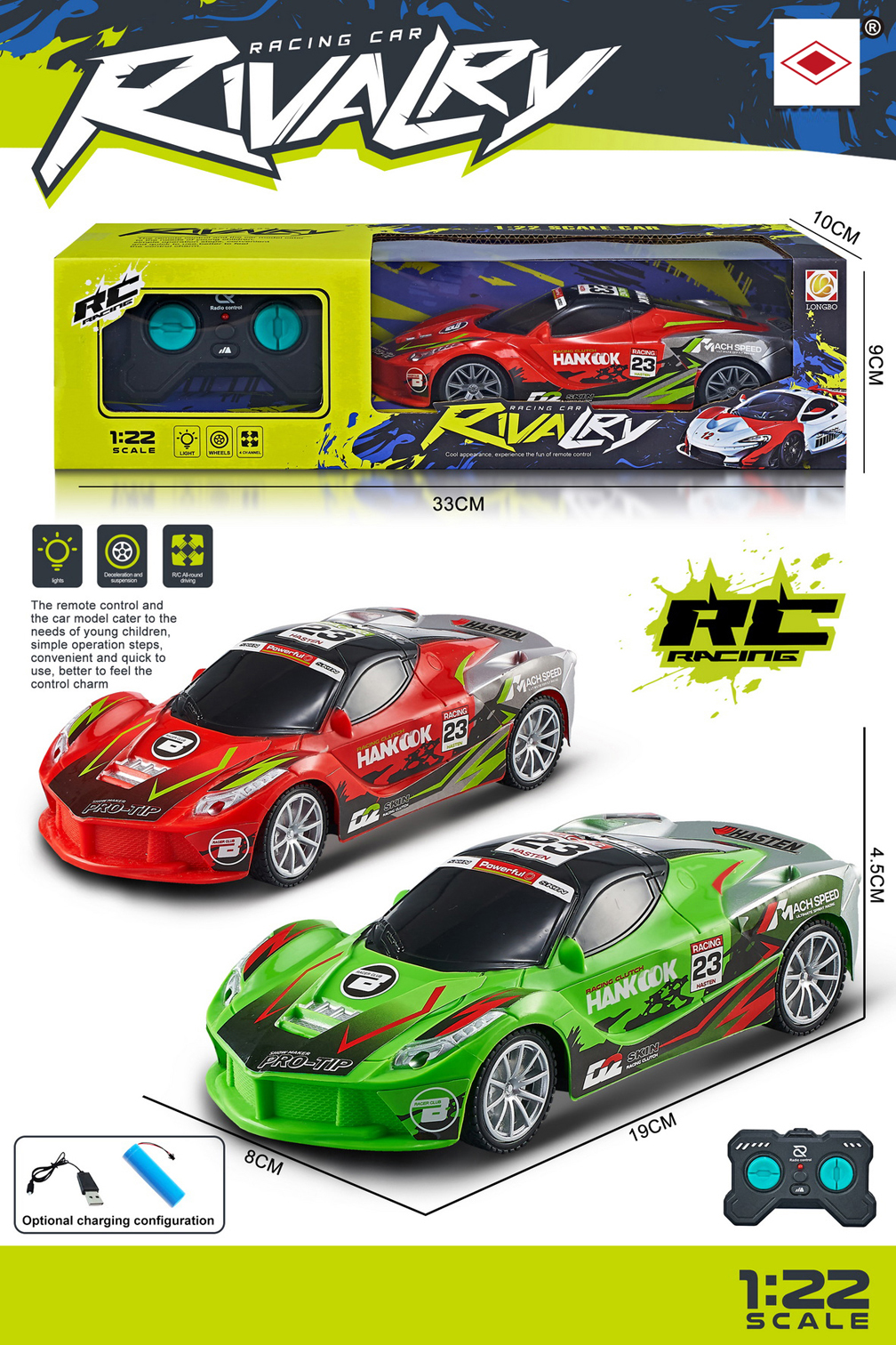 & Free ShippingCOCHE R/C CARRERA CON SONIDO ESCALA 1:22,2 COLORES