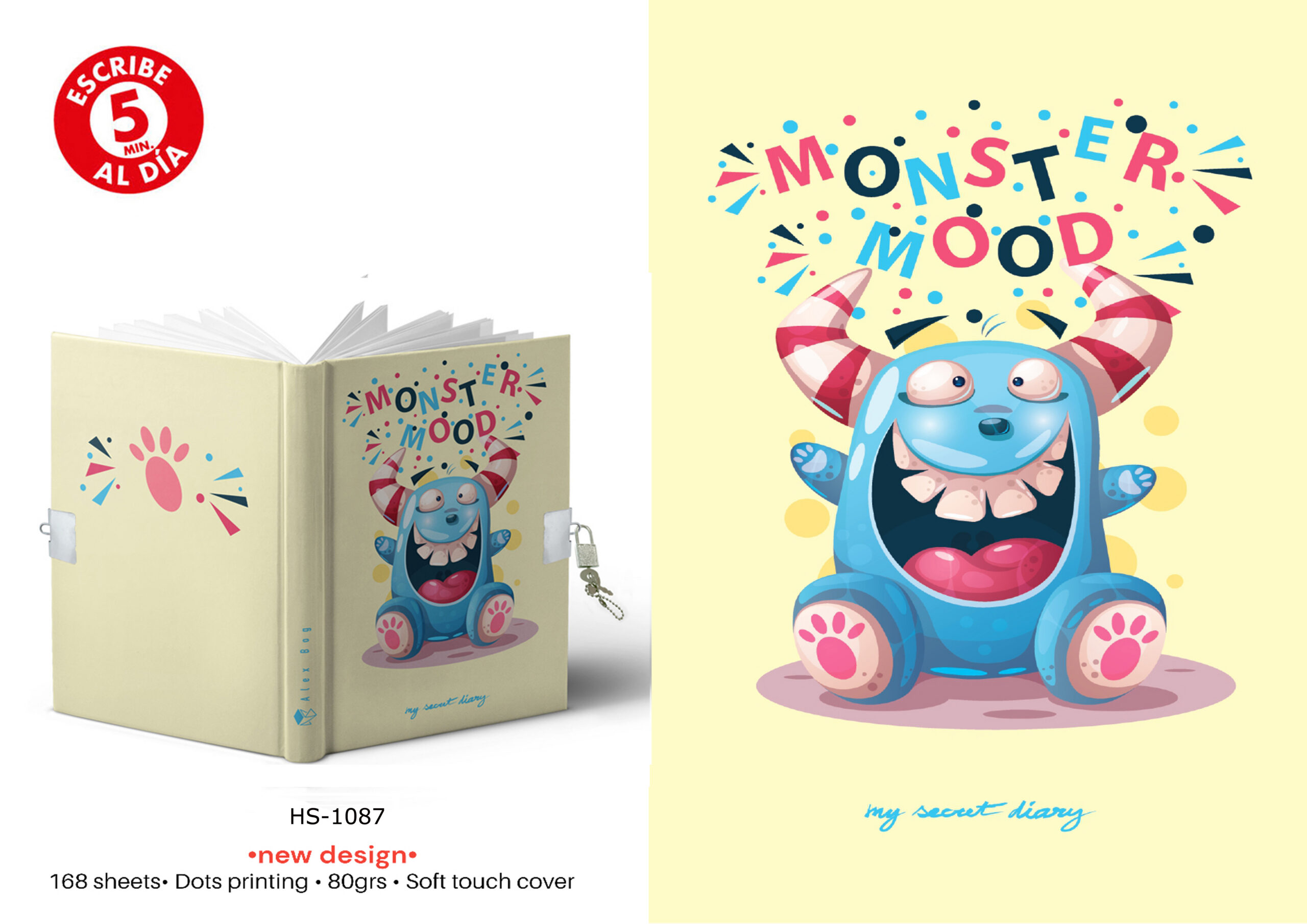 & Free ShippingDIARIO A5 168H.C/CANDADO MONSTER MOOD