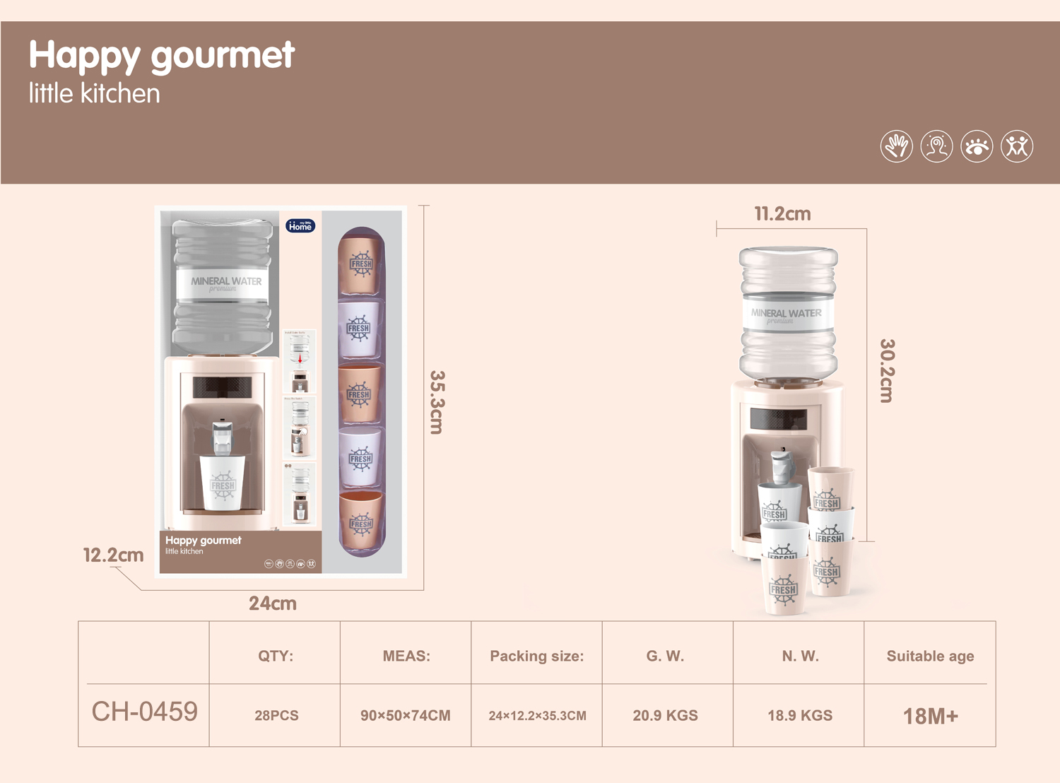 DISPENSADOR DE AGUA GOURMET MARRON,LUZ Y SONIDO