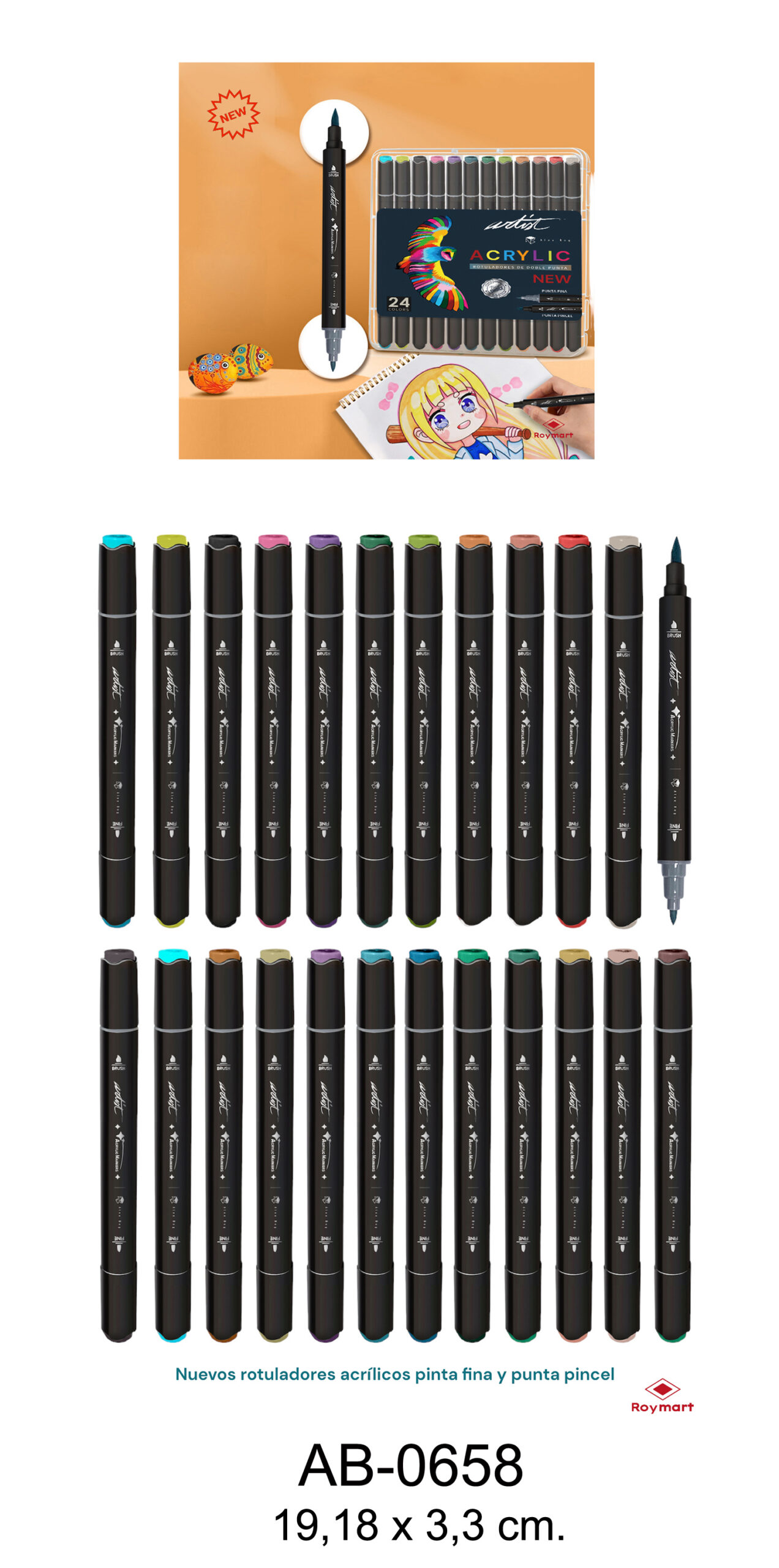 ESTUCHE ACRILICOS DOBLE PUNTA ARTIST,24 COLESTUCHE ACRILICOS DOBLE PUNTA ARTIST,24 COL