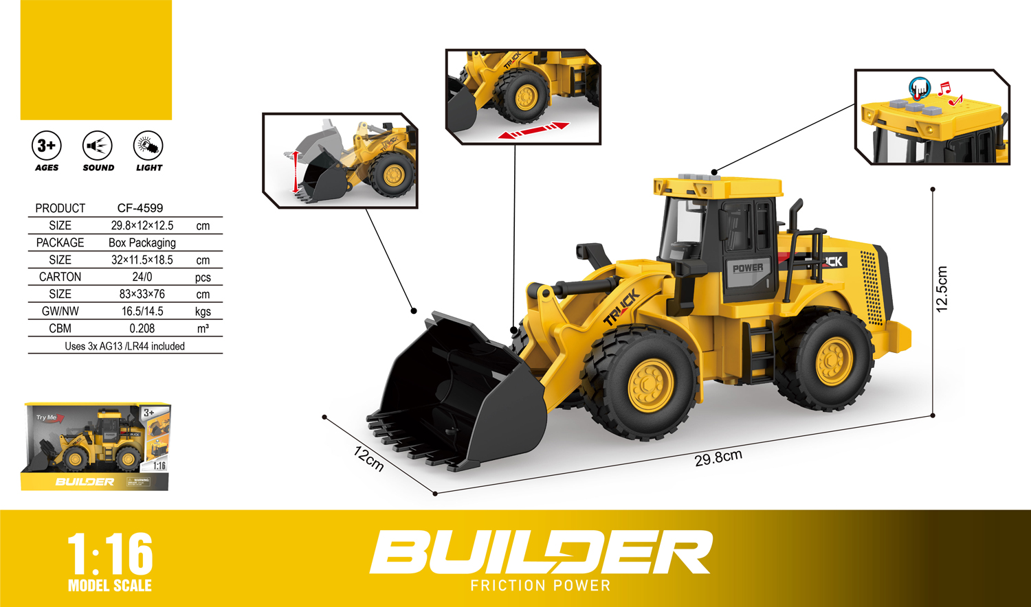 & Free ShippingEXCAVADORA FRICCION POWER ESCALA 1:16 LUZ SONIDO