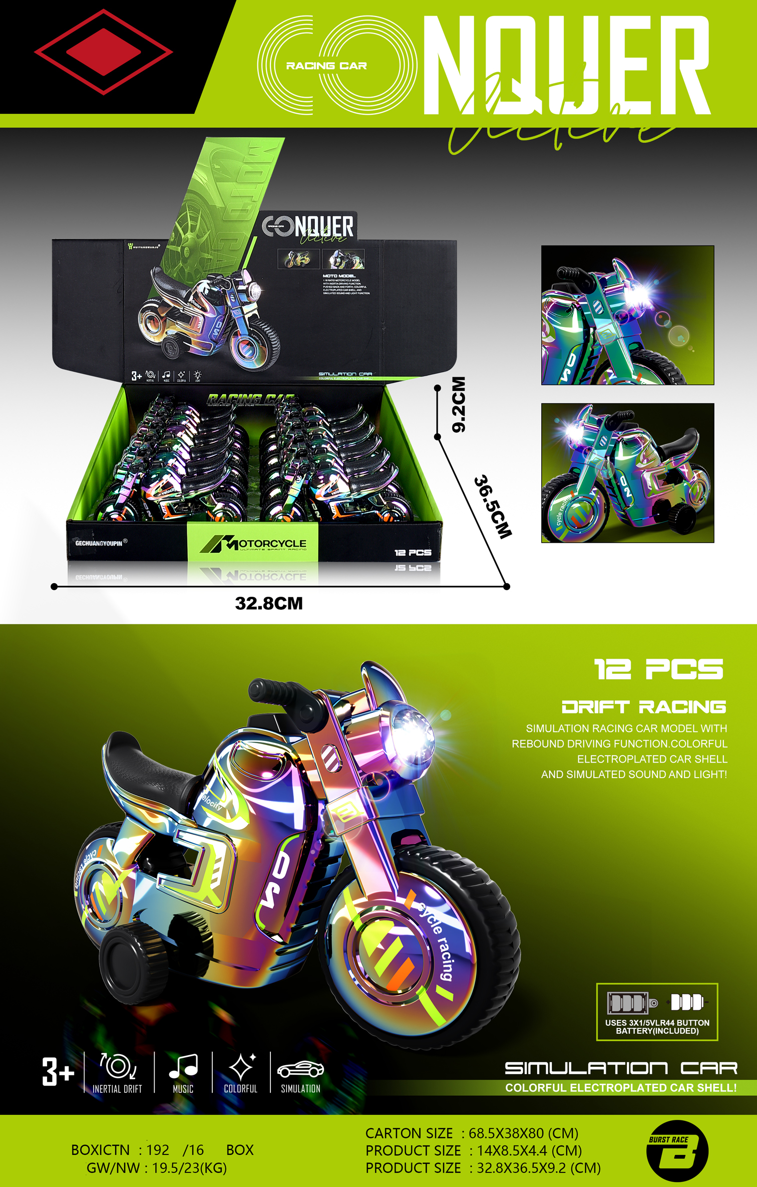 & Free ShippingEXP.12 MOTOS FRICCION LUZ Y SONIDO