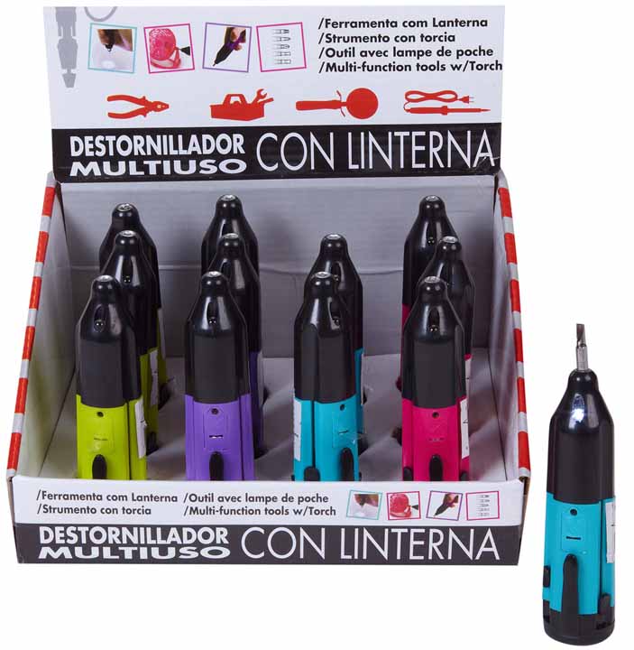 EXP. 12 PIEZAS MULTIDESTORNILLADOR C/LUZ,4 COL.