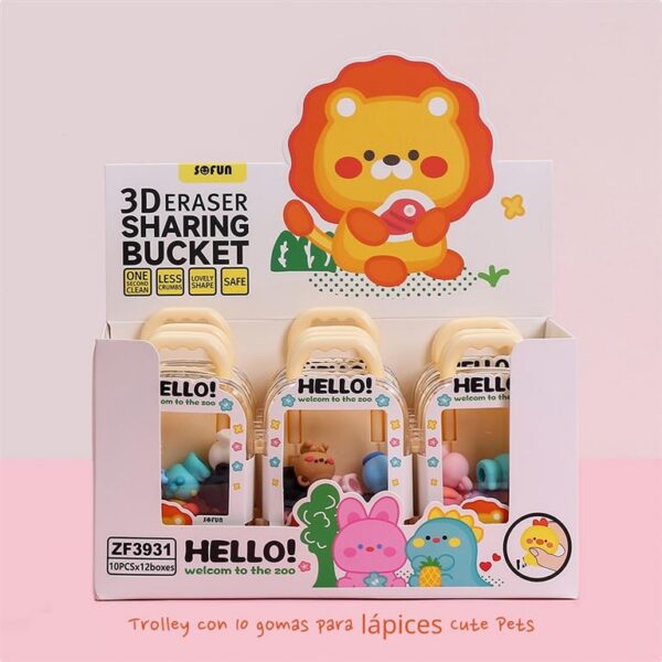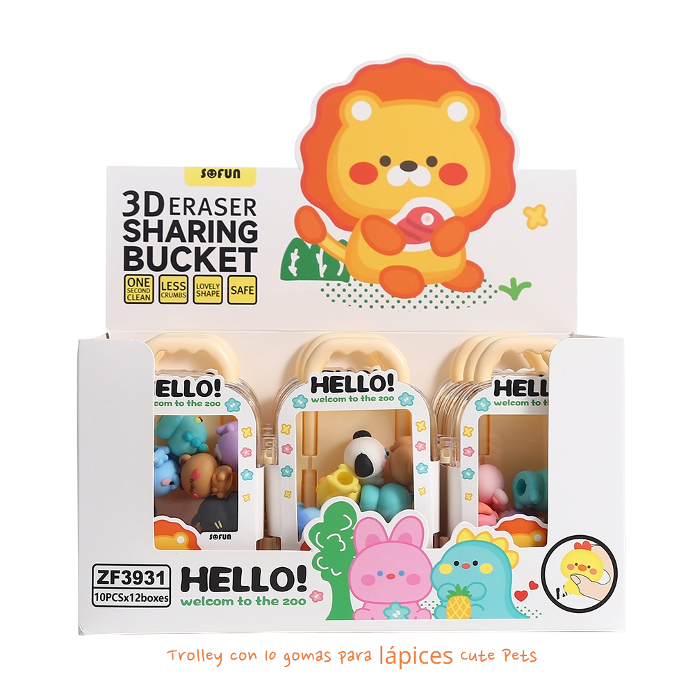 EXP.12 SETS CON 10 GOMAS 3D ANIMALES DEL ZOO