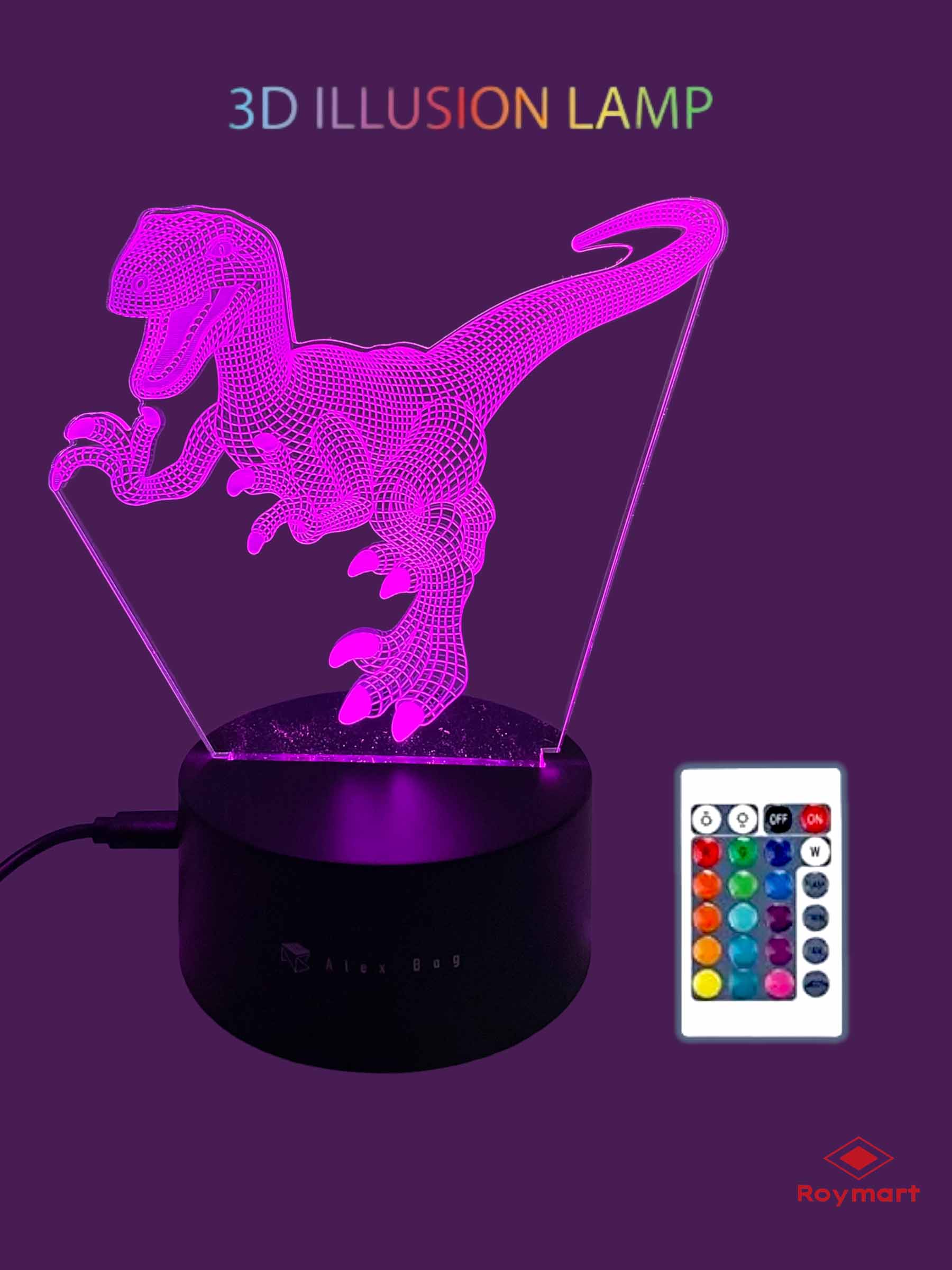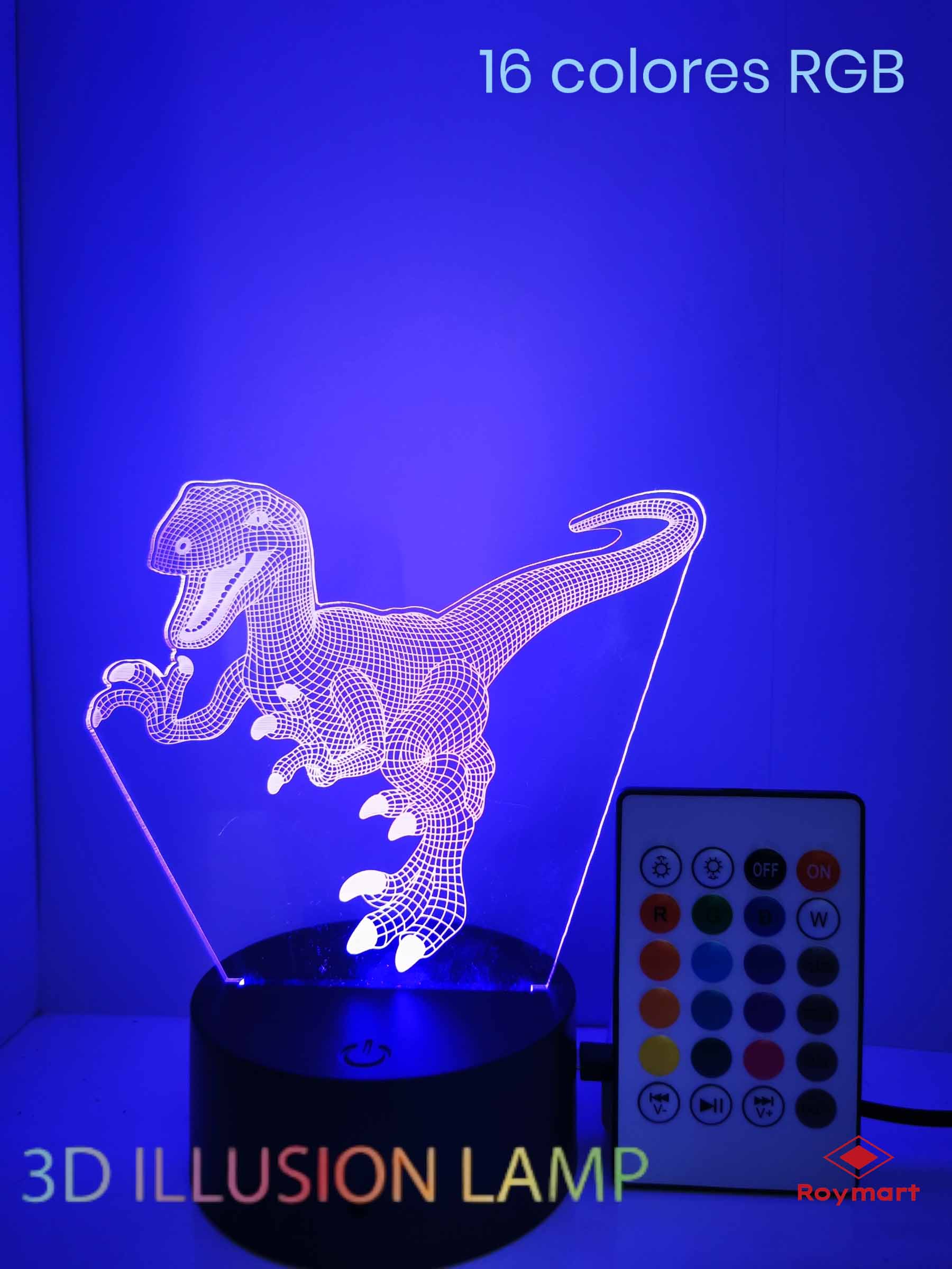 LAMPARA LED 3D NIGHT LIGHT DINO CONTROL REMOTO