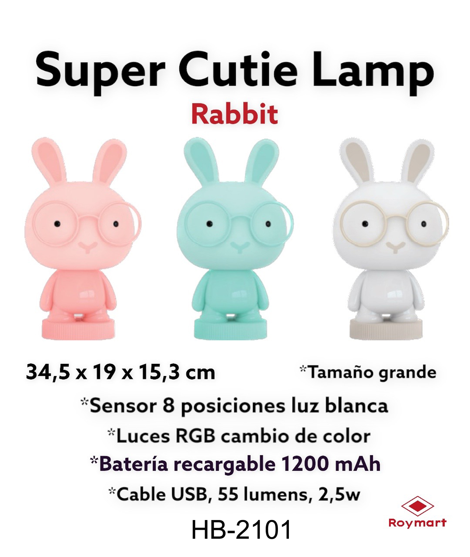 LED LAMP RABBIT GAFAS RGB 8 CAMBIOS COLOR ,3 COL.