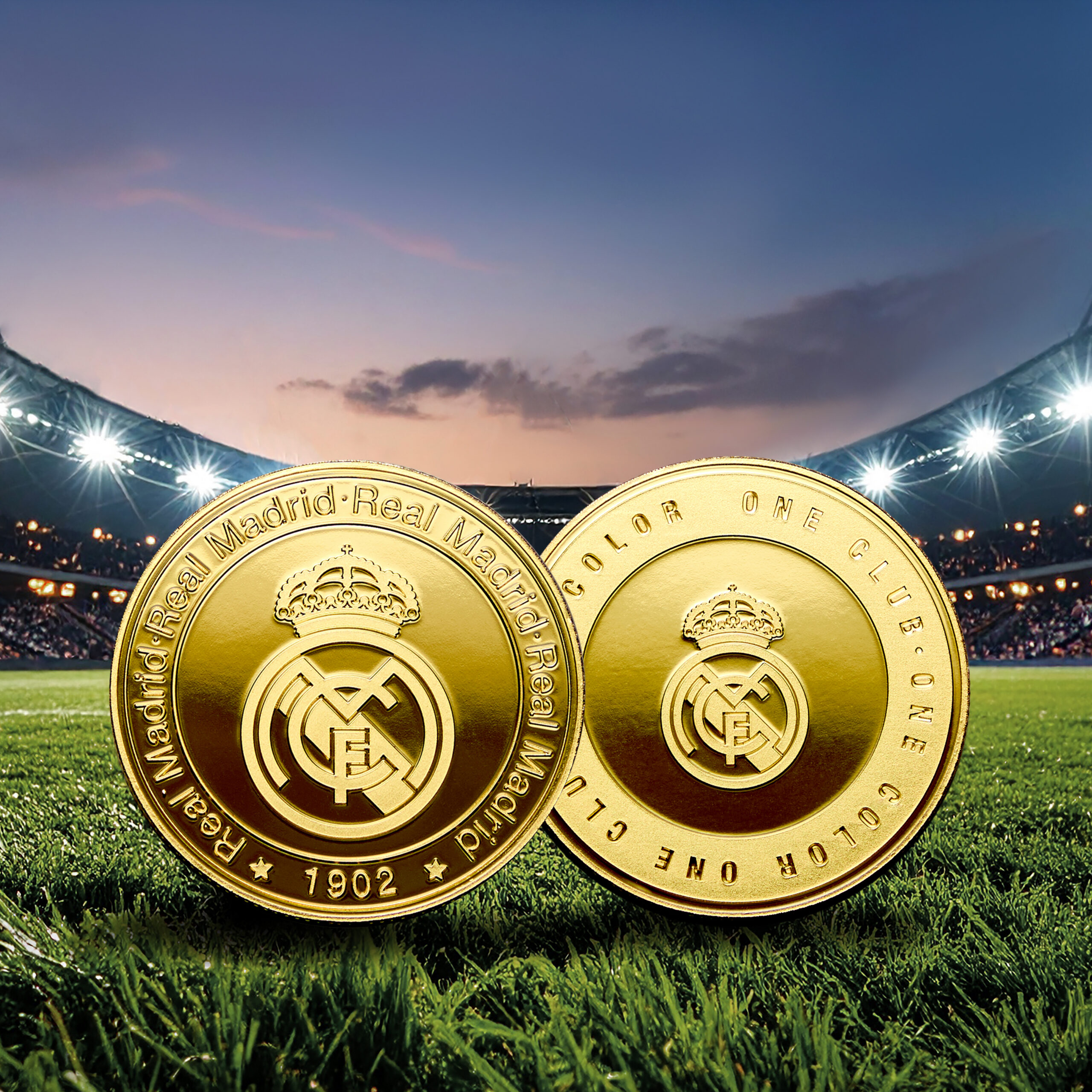 Con el emblema «One Club One Color» en el anverso y el escudo del Real Madrid en el reverso, esta moneda de 4 cm de diámetro es una pieza de colección única, elegante y cargada de simbolismo. Se presenta en cápsula acrílica, con tarjeta soporte oficial dentro de un estuche individual exclusivo del Real Madrid.