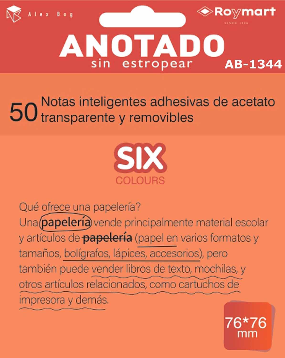 PAQUETE 50 NOTAS INTELIGENTES ACETATO NARANJA FLUO