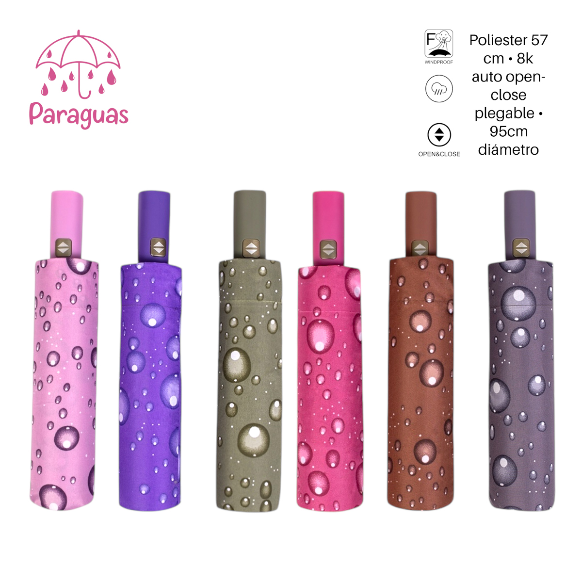 & Free ShippingPARAGUAS AUT.PLEGABLE 6 COL.GOTAS LLUVIA