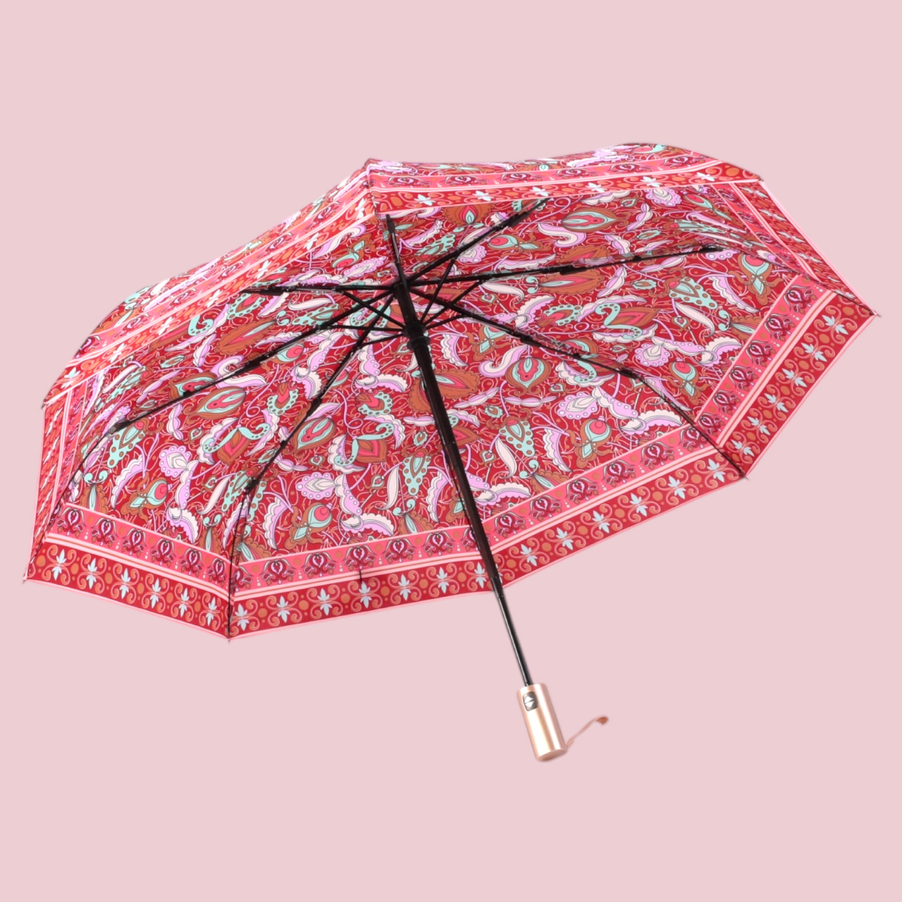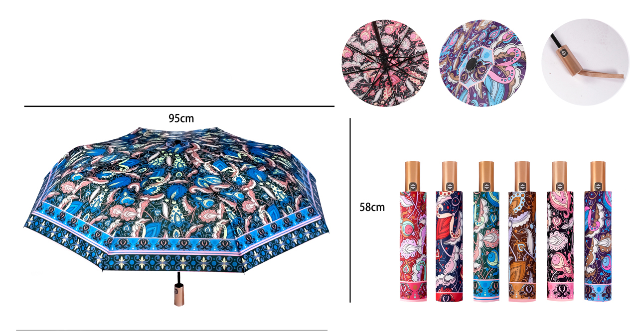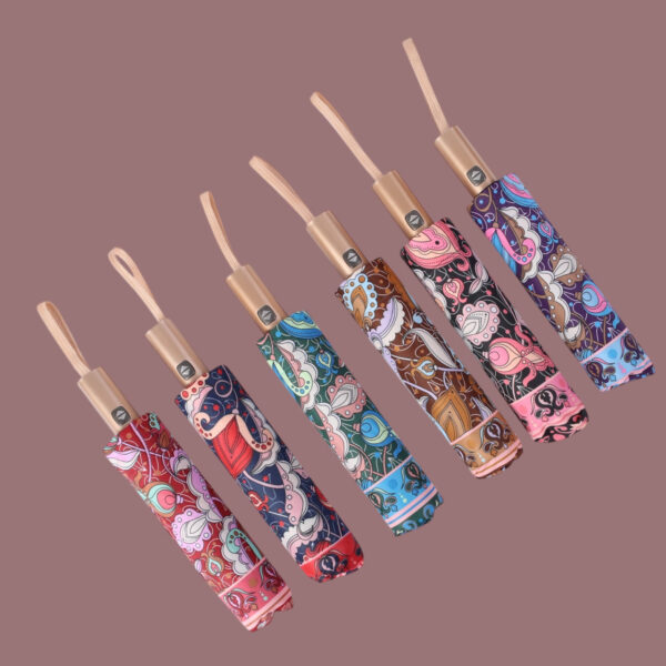 PARAGUAS AUT.PLEGABLE MANGO DORADO 6 COL. ARABESCOS