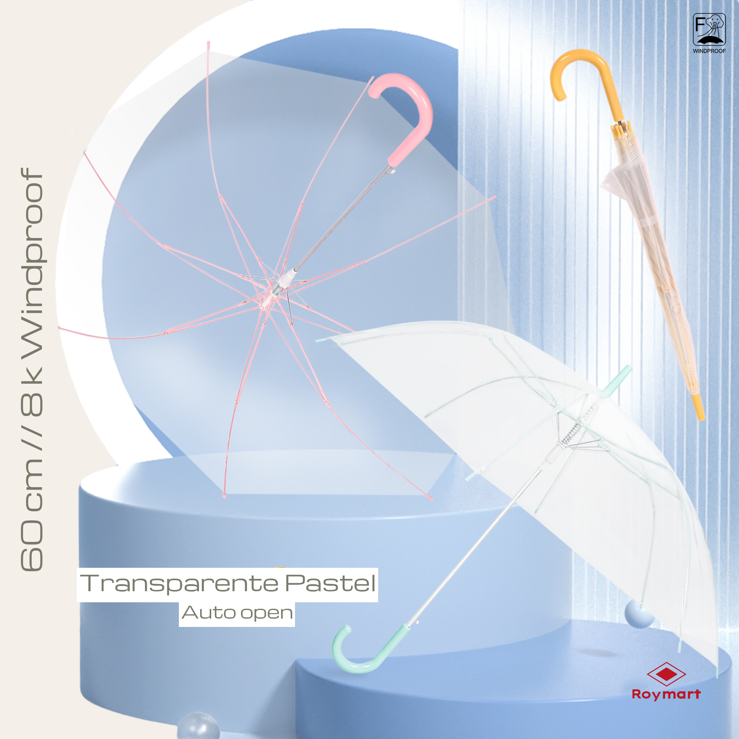 PARAGUAS AUTOMATICO JUVENIL 3 COLORES TRANSP.