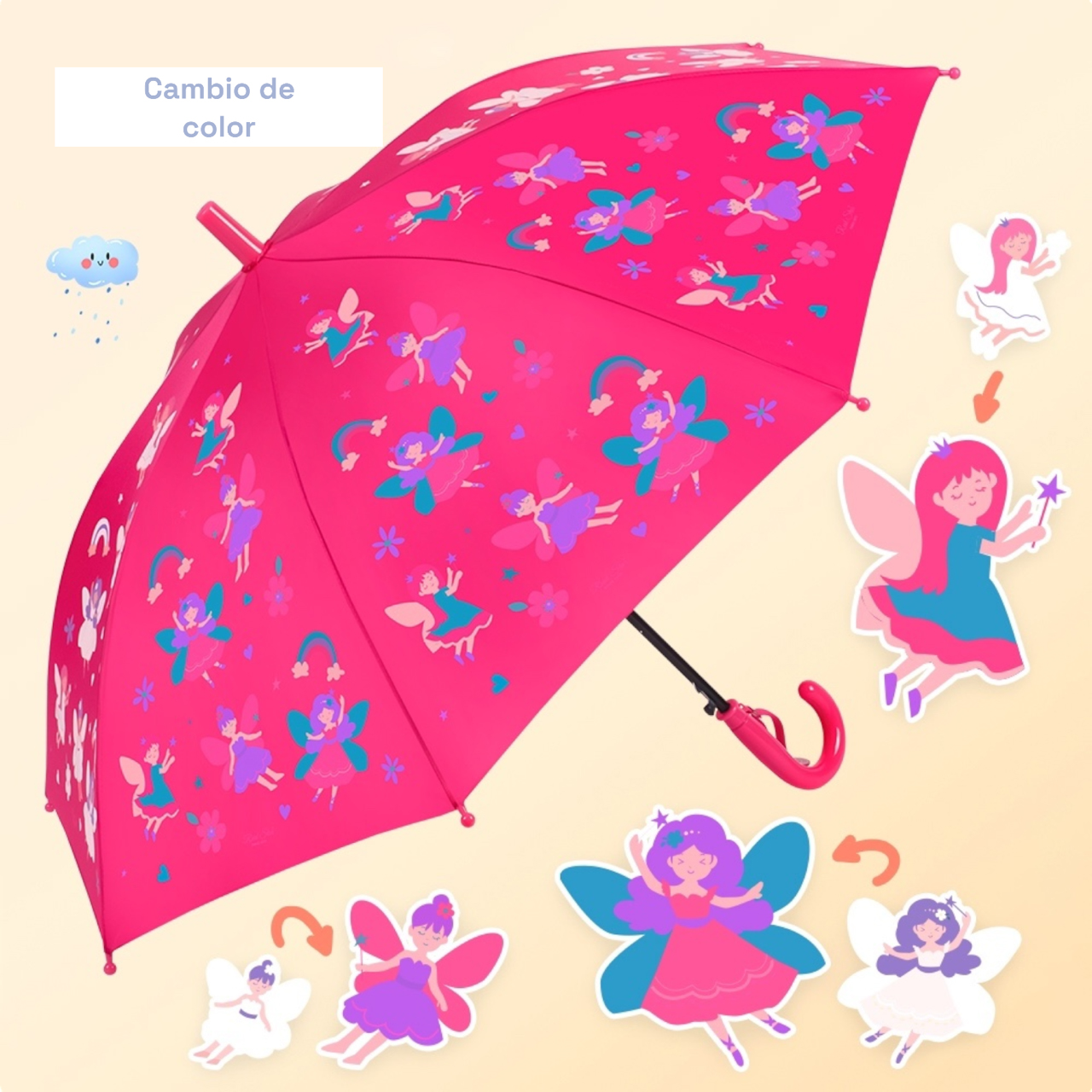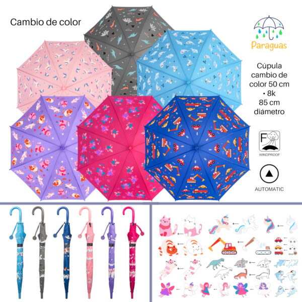 PARAGUAS INFANTIL CAMBIO DE COLOR 6 COLORES SURT