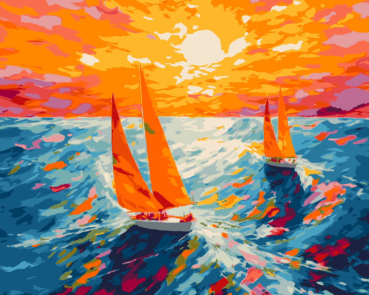 PINTAR POR NUMEROS VELEROS AL AMANECER