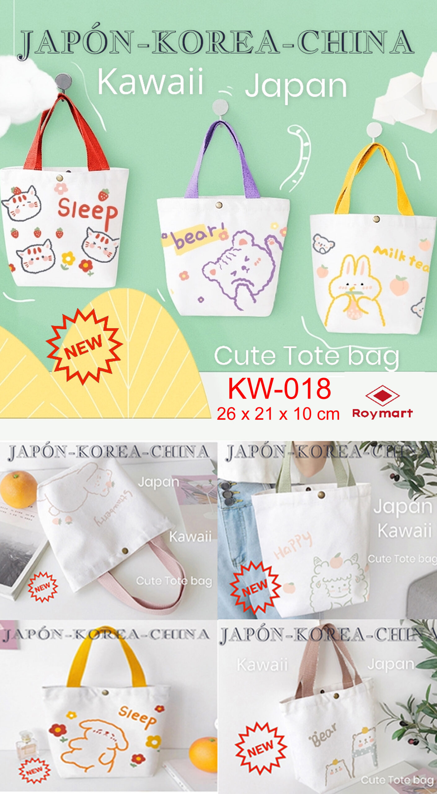 TOTE BAG JAPANESSE STYLE KAWAII,8 COLORES